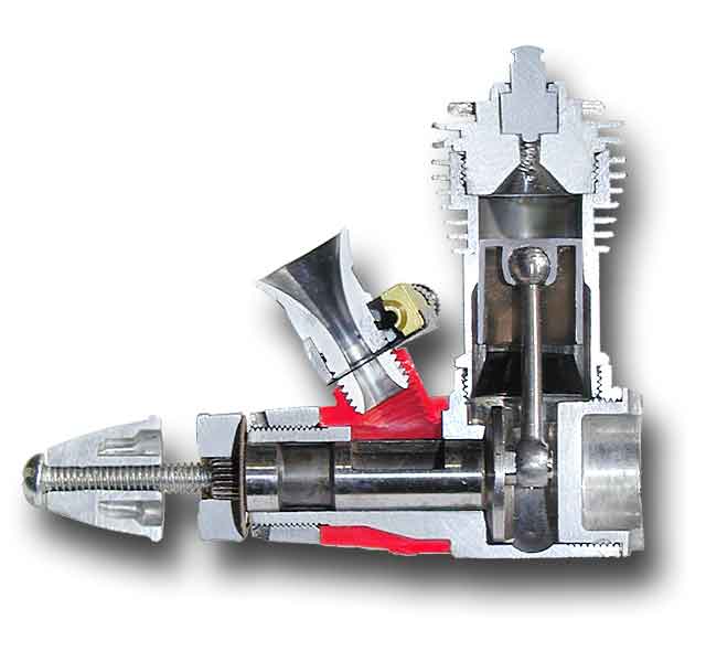 L'importance [sur un petit moteur] du logement de filament sur le volume de la chambre de combustion est flagrant sur cette coupe de Cox Tee Dee 051 (source : MH-AeroTools) :