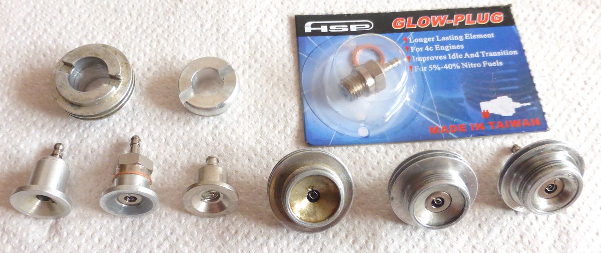 Maintenant la bougie : après pas mal d’expérimentations plus ou moins concluantes, c’est la HSP N3 pour auto RC 1/10ème (bougie chaude), vendue à un tarif modique (autour de 3€) sur eBay ou AliExpress, qui a donné toute satisfaction. Cette bougie convient aussi très bien aux moteurs de petites cylindrées, type G-Mark 061, Thunder Tiger 074 et tous les classiques .10 OS, Magnum, etc. D’autres bougies chaudes similaires, comme l'OS A3, pourront aussi convenir.